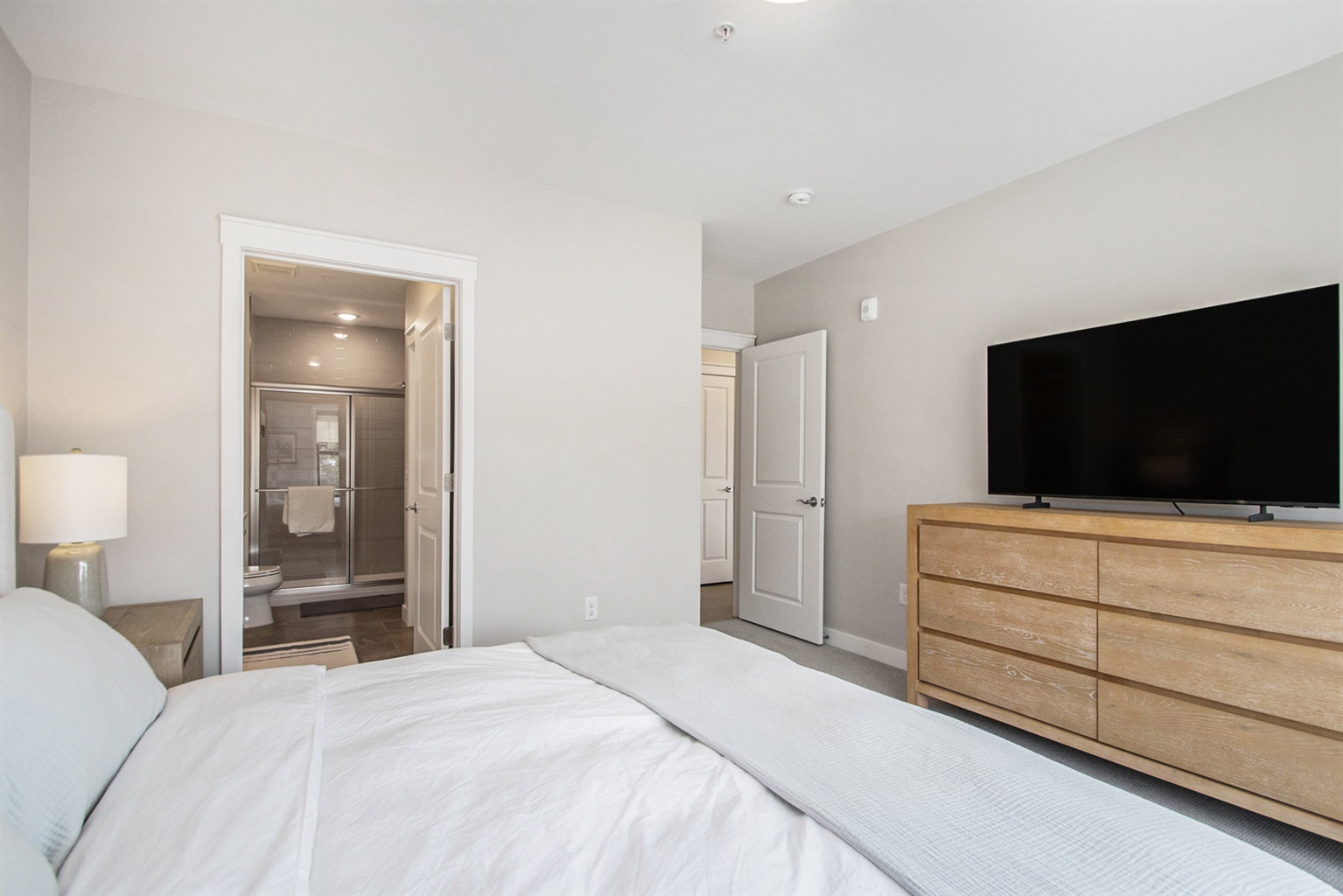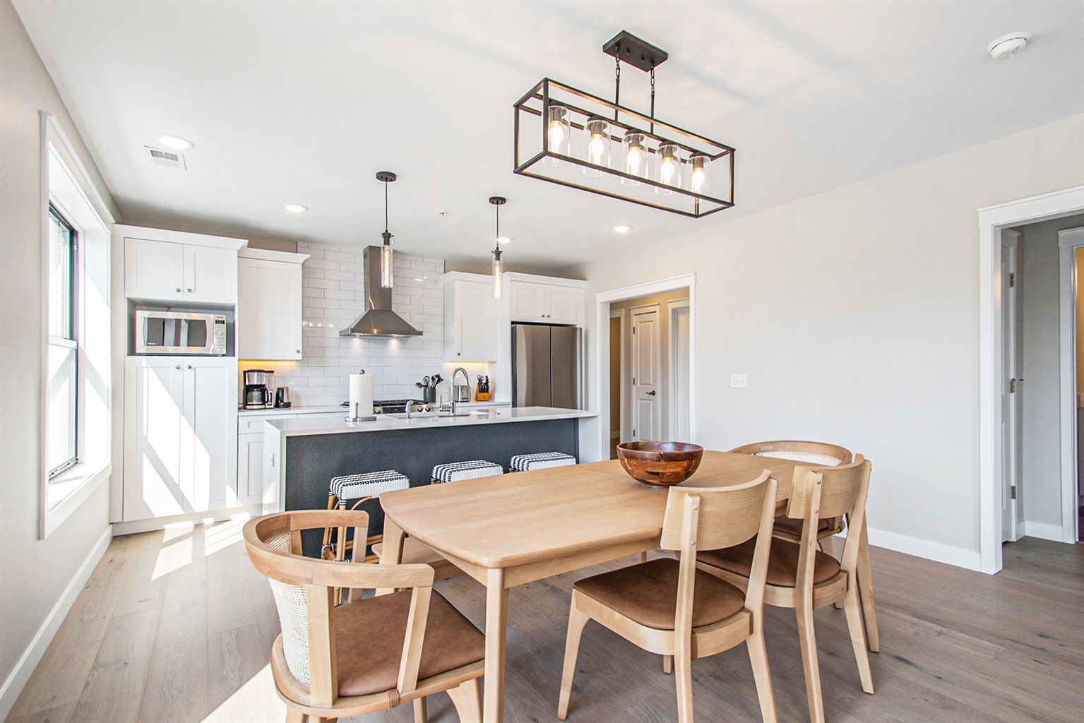 Inside, you’ll find thoughtful finishes, modern furnishings, and an inviting layout designed for both relaxation and gathering. The primary bedroom features a king bed, the guest bedroom offers a queen bed, and the living room includes a pull-out sofa to comfortably accommodate additional guests.