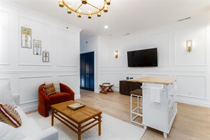 Inside, you’ll find a thoughtfully designed space featuring a full kitchen equipped with everything you need to prepare meals during your stay. The inviting living room includes a Smart TV and a pull-out couch, making it a great place to relax or accommodate extra guests. The bedroom offers a comfortable queen bed and plenty of storage, including a luggage rack in the closet, and a convenient desk and rolling chair for those working while traveling! The full bathroom just off the bedroom provides all the essentials for a refreshing stay.