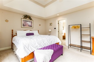 Upstairs, you'll find two cozy bedrooms with double beds, plus a large master suite featuring a king bed and its own sitting area with a couch – ideal for unwinding after a long day. The open-concept living room features a premium stereo-connected sound system so you can set the vibe throughout your stay. The home also features a well appointed kitchen, great for preparing your favorite meals!