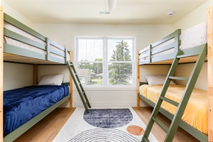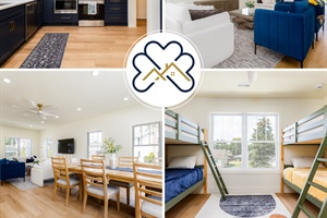 Unwind in the welcoming living room or gather in the well-appointed kitchen, thoughtfully designed for cooking and entertaining. Two bedrooms include private ensuite bathrooms: the main floor queen bedroom and the upstairs master featuring a king bed. The additional bedrooms provide plenty of flexibility, with a bunk room offering two sets of twin bunks (4 beds total) and another queen bedroom for added comfort.